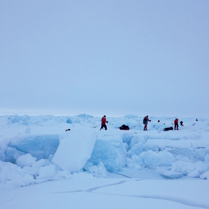 While North and South Poles share the hostility of extreme cold and unpredictable weather, the terrain and challenges are different. The team have made it across the frozen sea of the Arctic Ocean; this expedition will take them close to 10,000 ft above sea level, dragging sledges across rock solid sastrugi with the constant threat of high winds.